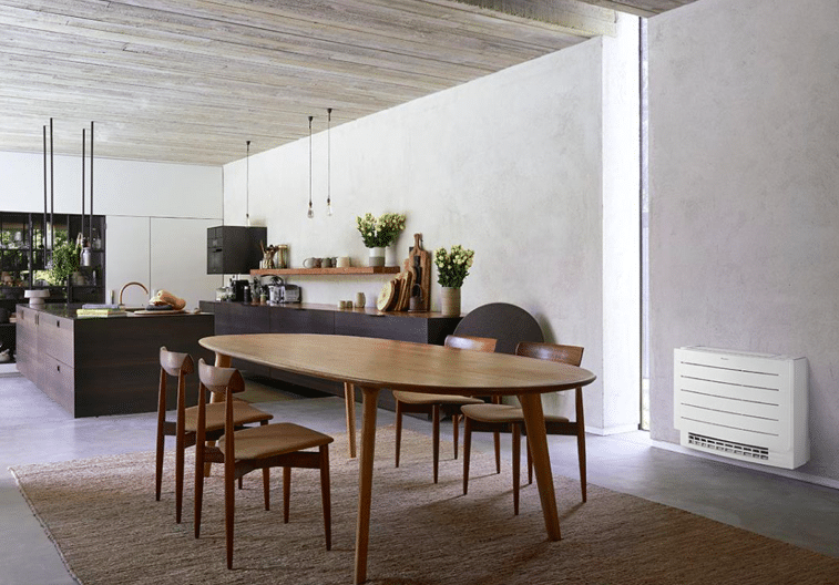 • De vloerverwarmingsfunctie optimaliseert de convectie door de warme lucht via de onderkant van de unit te verdelen